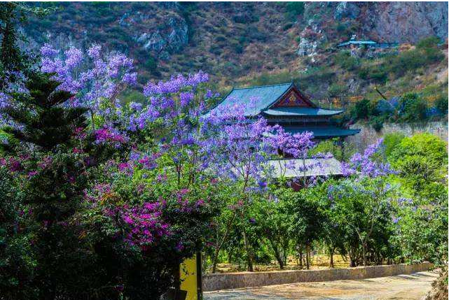 通過“背土上山、掘井取水、科學(xué)規(guī)劃、工程治理”的方式,改造原有石漠化土地和礦山跡地,利用金沙江河谷亞熱帶氣候和山地垂直氣候變化,種植200多種特色水果、名貴喬木、花卉等,形成“月月有花開、天天有果摘”的特色百果百花園林區(qū)。整個(gè)園林區(qū)綠化由市林業(yè)協(xié)會(huì)編制總體規(guī)劃,已經(jīng)累計(jì)完成堆土約200余萬立方米,改造石漠化土地近5000畝,植樹造林3000余畝,成林2000多畝,栽種各種植物200萬余株,培育各種特色樹種、花卉、果樹苗木120萬株,已經(jīng)種植培育品種150多種。其中,寺院周邊規(guī)劃建立的3000畝藍(lán)花楹主題公園,已完成約1700畝移植并基本成林。