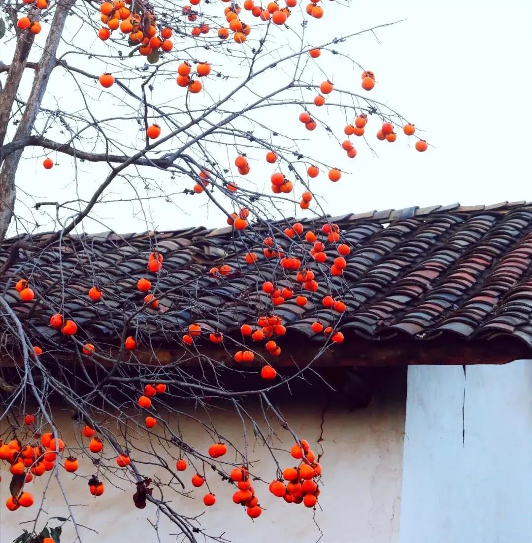 黃燦燦、紅彤彤的柿子沉甸甸地掛滿枝頭