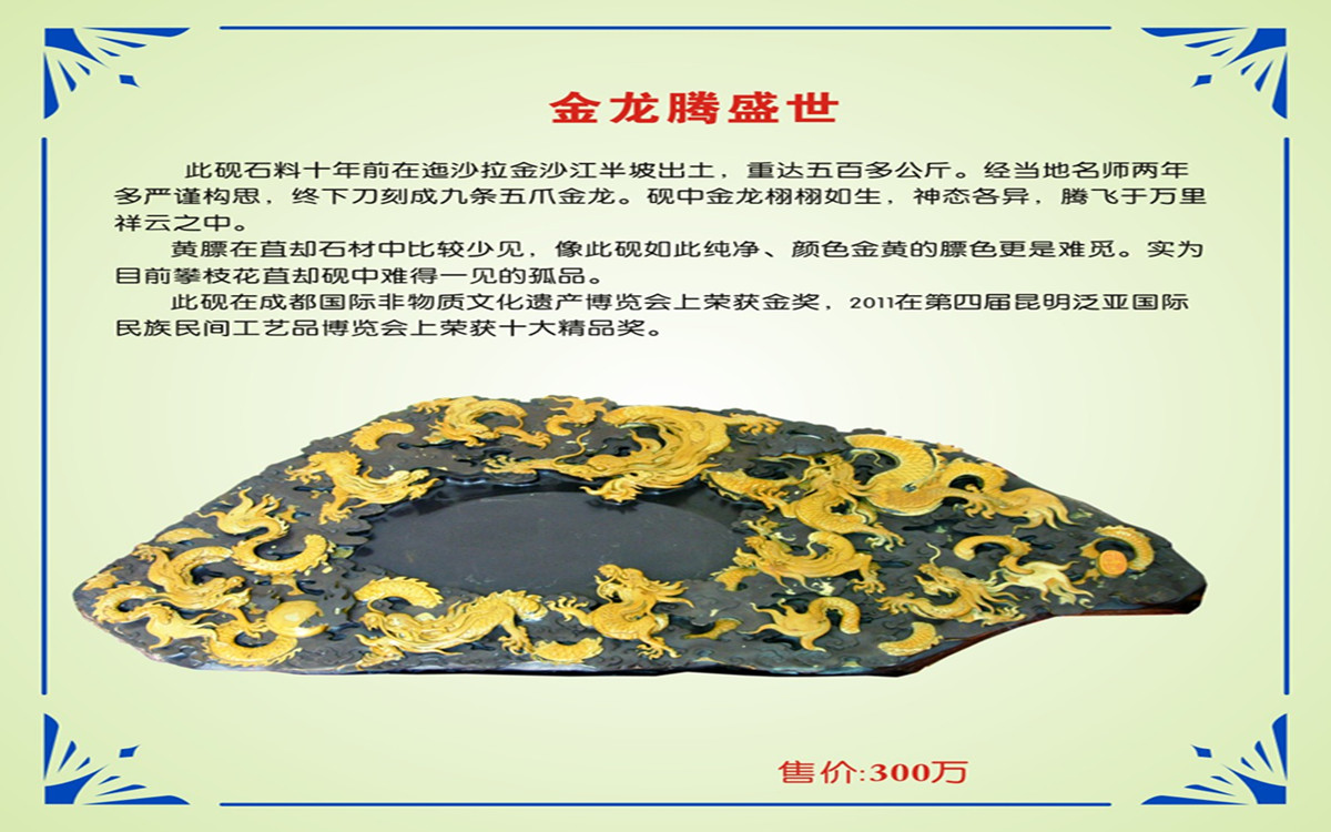 2009年1月,石寶齋選送的《九龍護(hù)乾坤》在中國(guó)·攀枝花第一屆全國(guó)觀賞石精品展中榮獲《金獎(jiǎng)》;