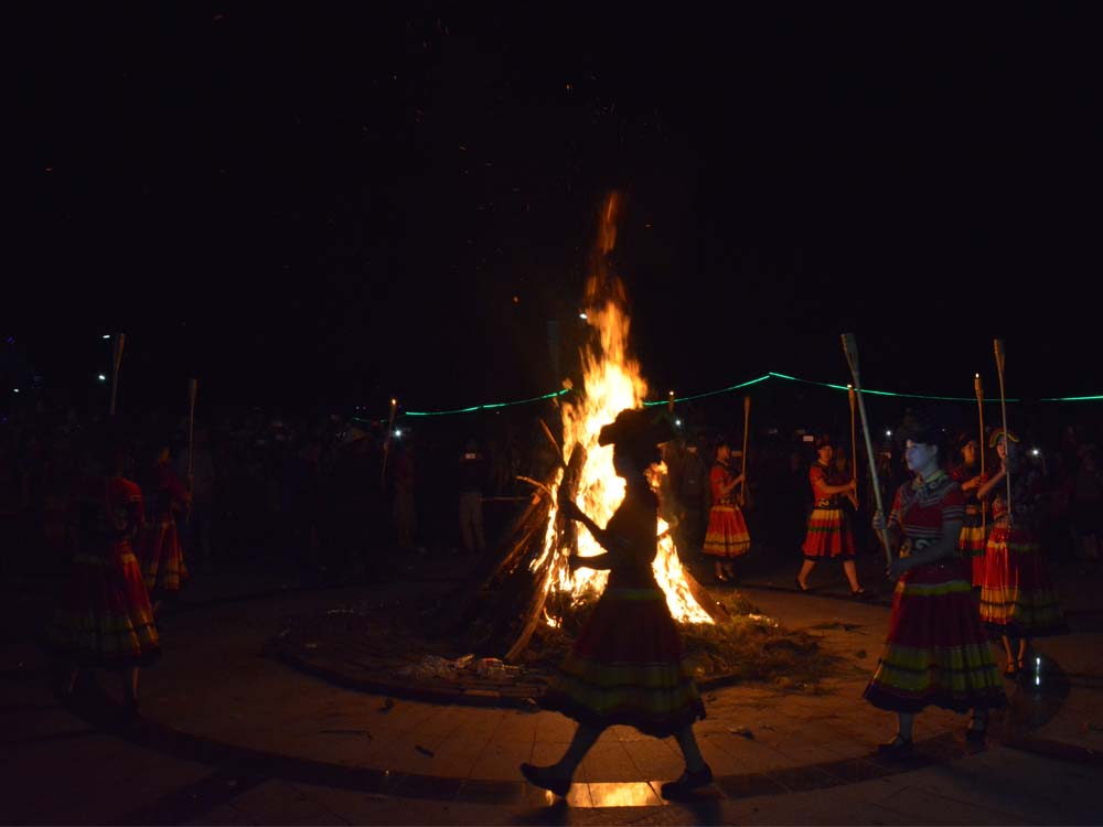 為了紀(jì)念這個(gè)難忘的日子,每年六月二十五日這天下午,彝族村寨的人們都要點(diǎn)燃起松明火把,用這熊熊燃燒的火把去照耀四壁,燒死蚊蟲;驅(qū)邪除惡,以示吉祥幸福;同輩人互敬火把,燒掉“祝崇”,以示清潔平安。然后舉著火把把田間地頭,揮舞引蛾,撲滅害蟲。巡游之后,將火把插在田頭地角,村前開闊地帶,男女青年就圍著火把跳起歡快的“左腳 ”,老人們圍著坐火塘,打開醇香的火酒,互相敬酒,互祝吉祥。