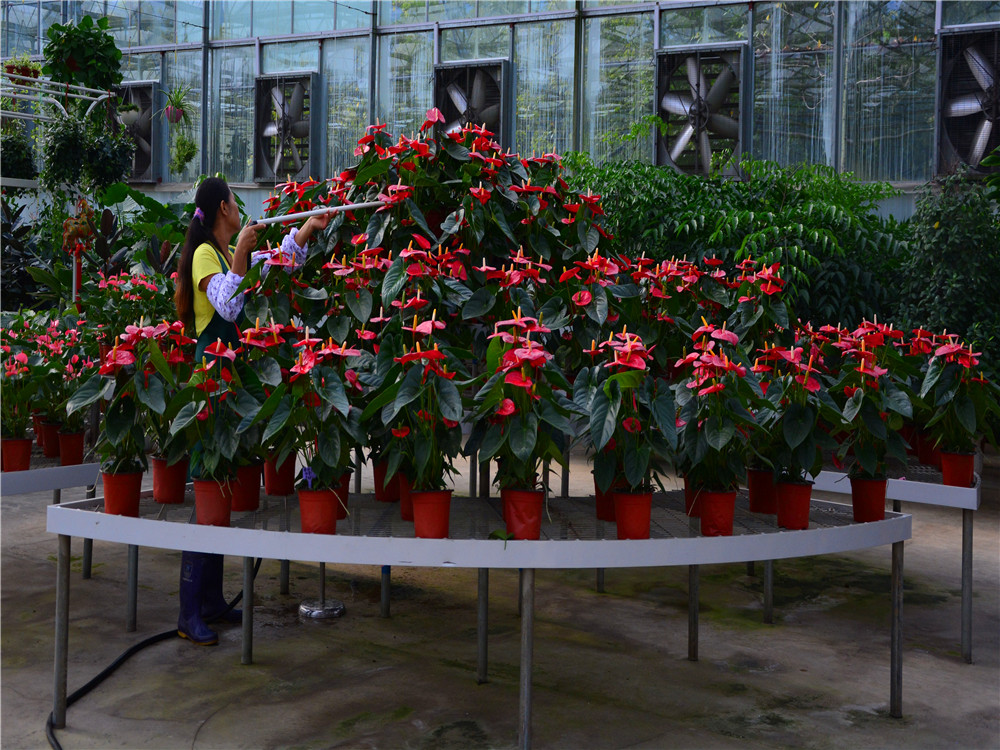 尋著花香,記者走進(jìn)一座自動化溫室花卉展廳。碩大的展廳內(nèi)水霧彌漫,空氣清新,如同一座天然氧吧,一盆盆嬌艷欲滴的花卉幼苗在展臺上貪婪的汲取著養(yǎng)分。一眼望見的便是一盆盆紅的、粉的、紫的、黃的……各色艷麗的蝴蝶蘭競相開放。再往里走,種類繁多的紅掌、竹芋等各式花卉相繼映入眼簾。漫步在花的海洋,讓你仿若走在大自然中,與之相比,城市中的花卉市場顯得少了幾分生機(jī)與活力。