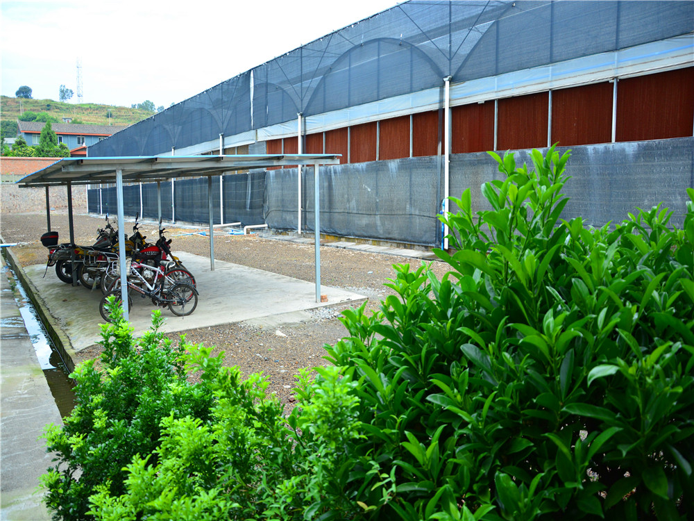 沿著貫穿這個(gè)寧靜的彝家村落寬敞平坦的混凝土道路走進(jìn)莊上村,夾道盛開的三角梅紅艷似火,一排排青瓦白墻的民居坐落其中,一座座花卉大棚整齊劃一。