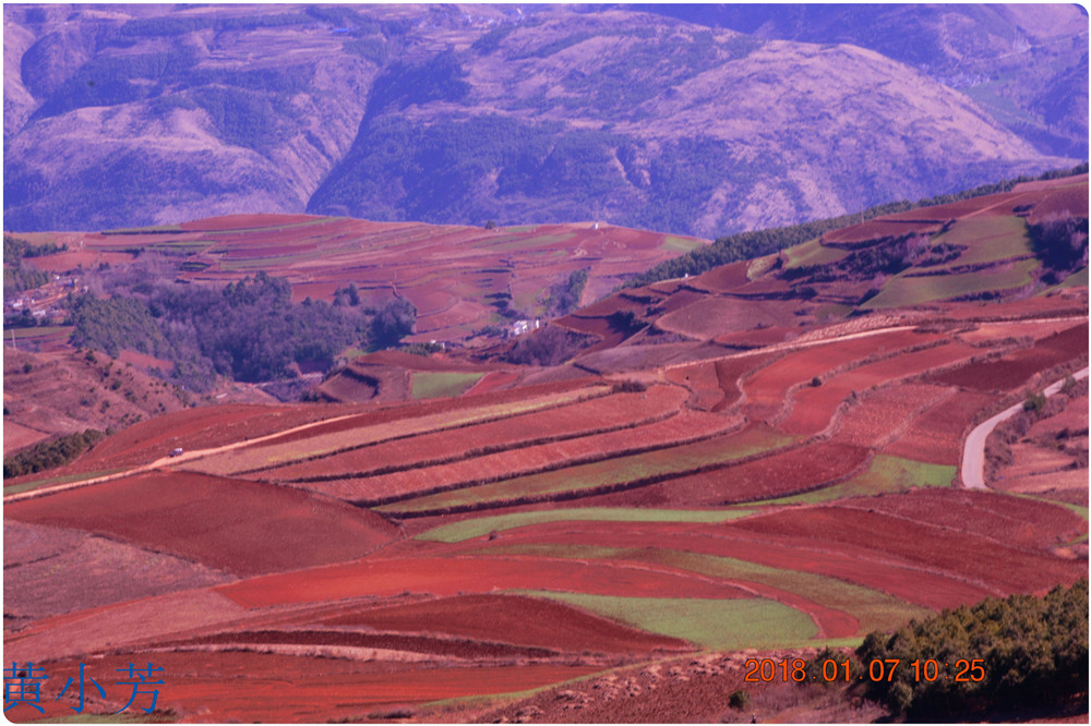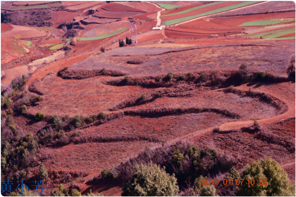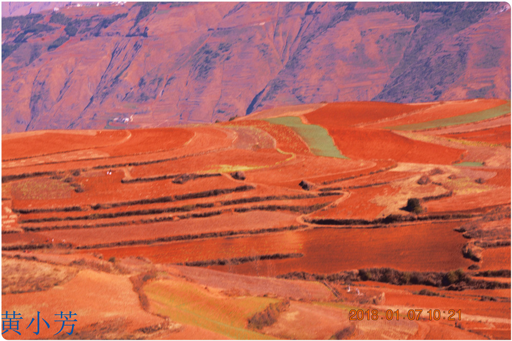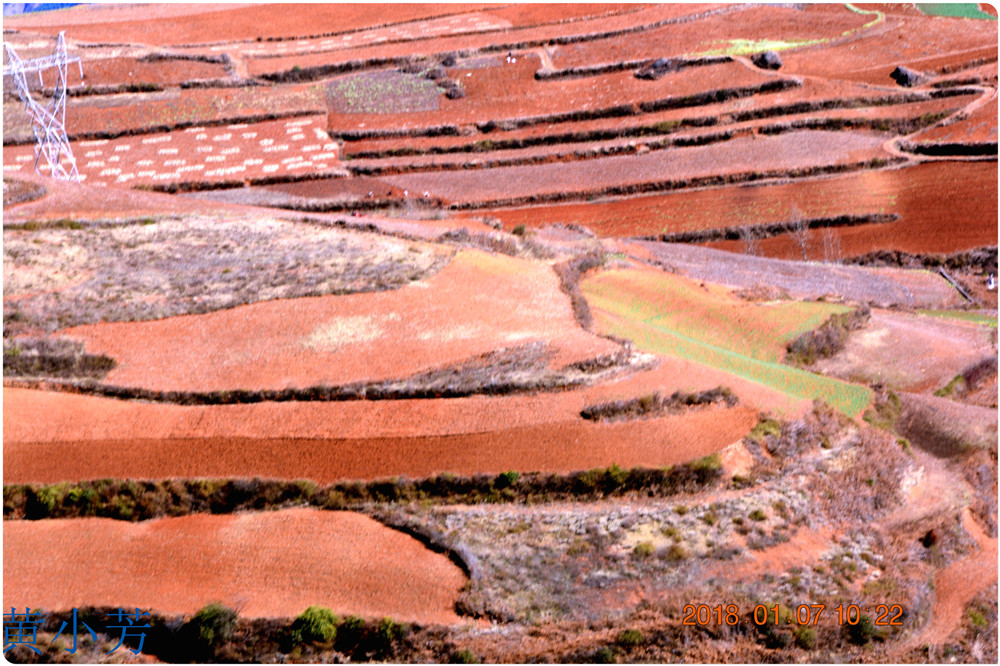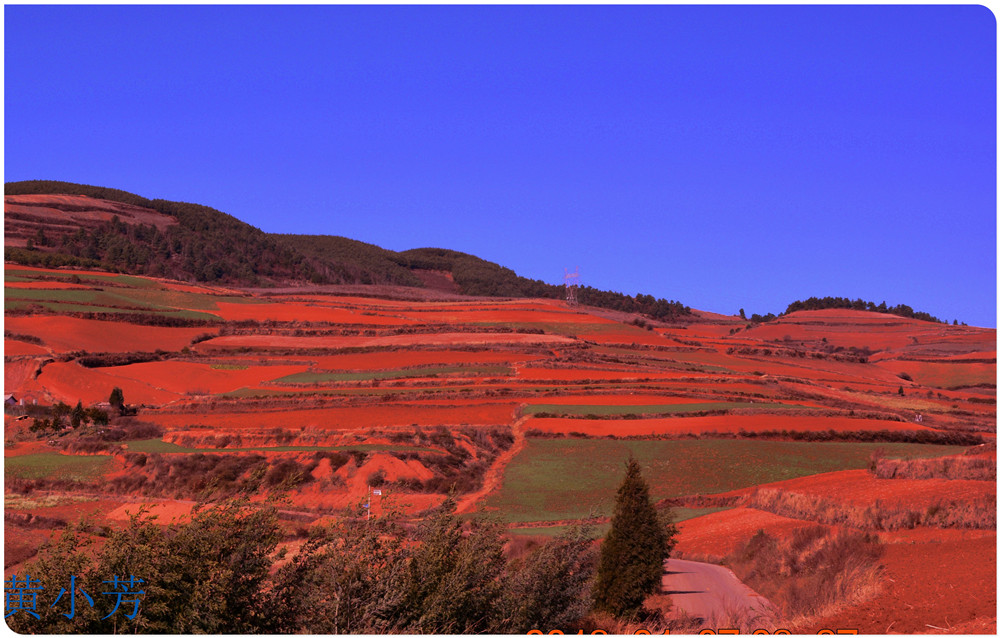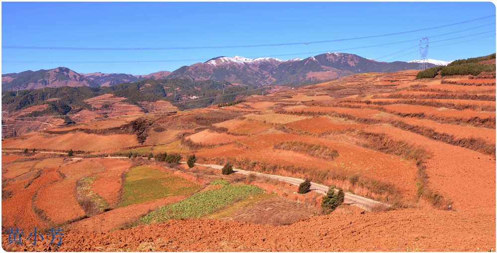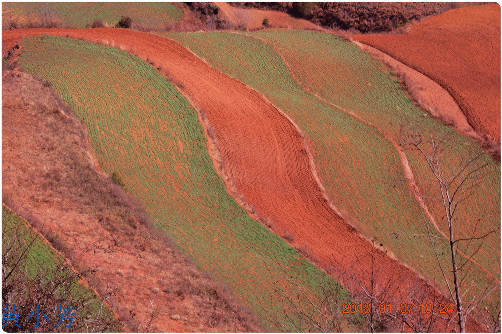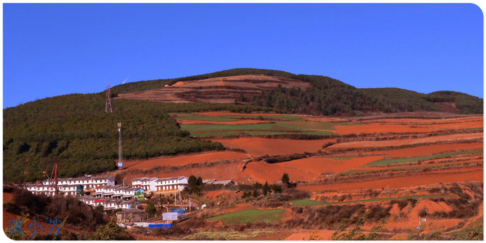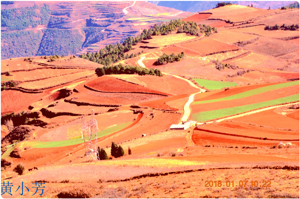云南地處溫暖濕潤的環(huán)境,土壤里的鐵質(zhì)經(jīng)過氧化慢慢沉積下來,逐漸形成了炫目的色彩。東川紅土地指的是位于昆明市東川區(qū)西南40多公里的紅土地鎮(zhèn)、有一名叫“花石頭”(在109公里程碑處)的地方,這里方圓近百里的區(qū)域是云南紅土高原上最集中、最典型、最具特色的紅土地。每年9至12月,一部分紅土地翻根待種,另一部分紅土地已經(jīng)種上綠綠的青稞或小麥和其他農(nóng)作物,遠(yuǎn)遠(yuǎn)看去,就像上天涂抹的色塊,色彩絢麗斑斕,襯以藍(lán)天、白云和那變幻莫測(cè)的光束,構(gòu)成了紅土地壯觀的景色。