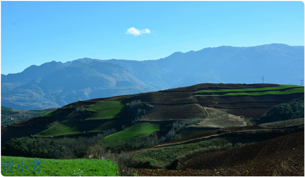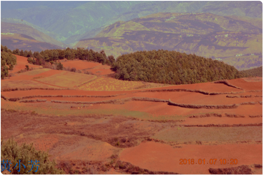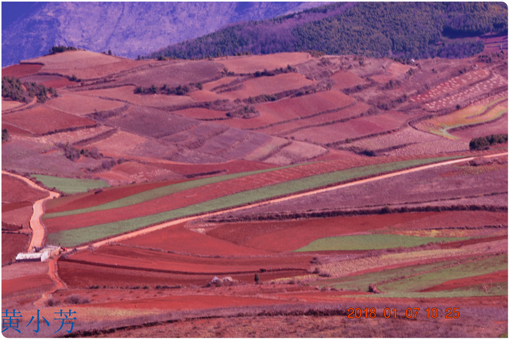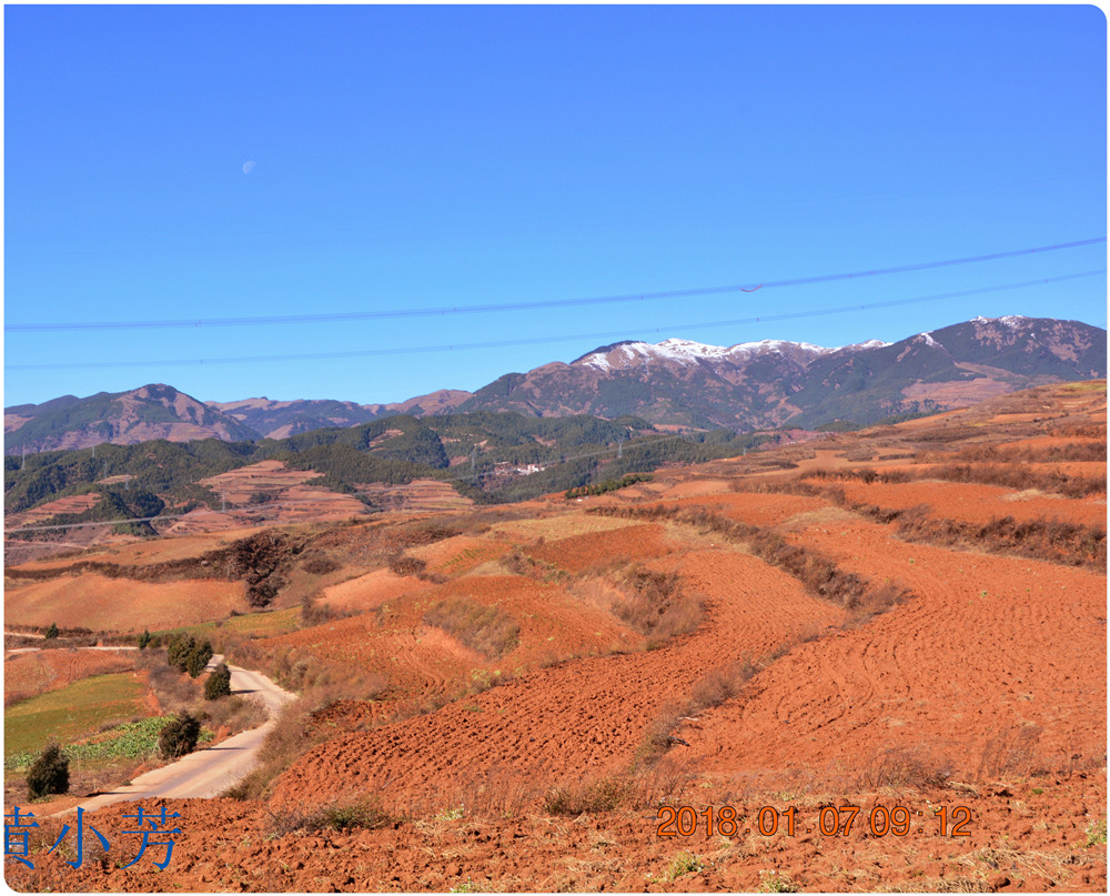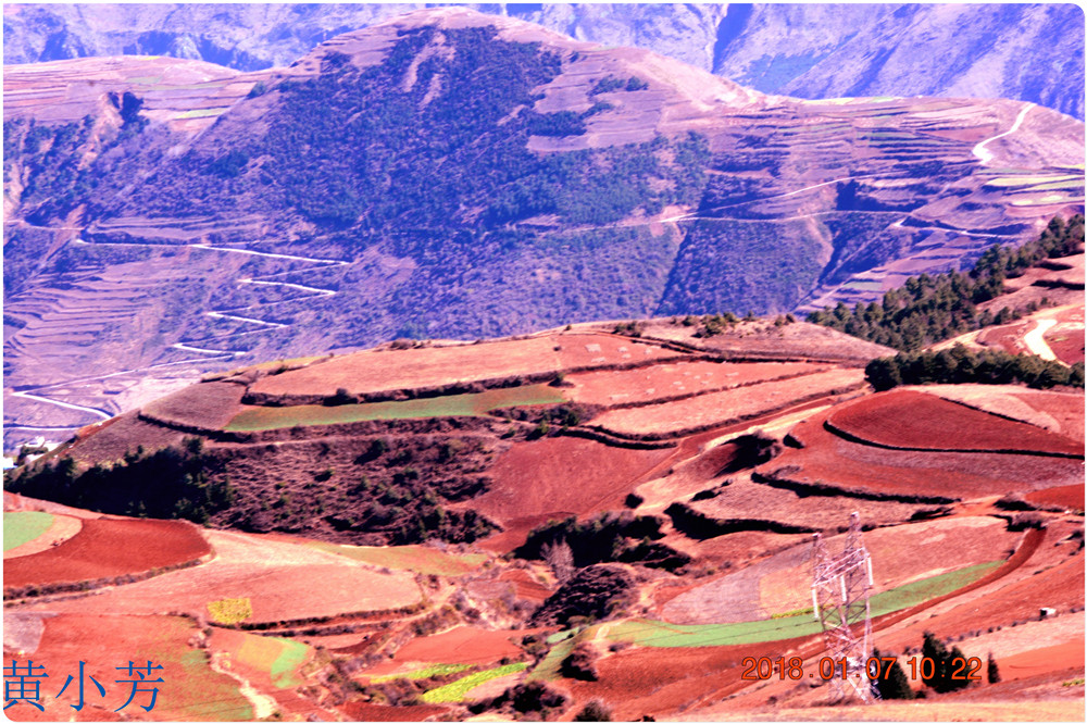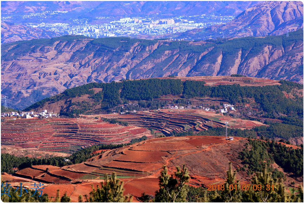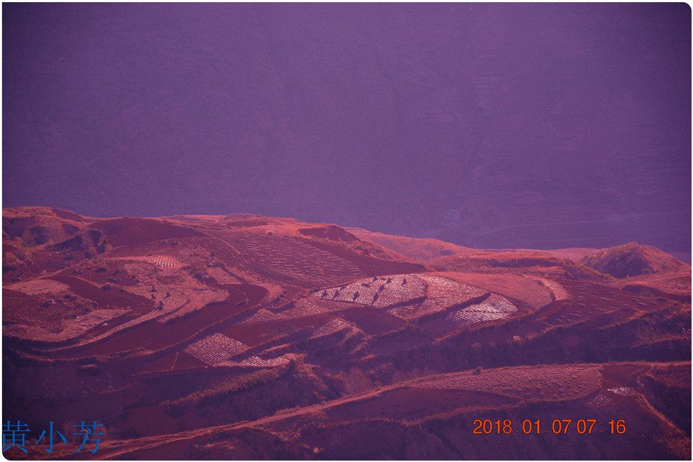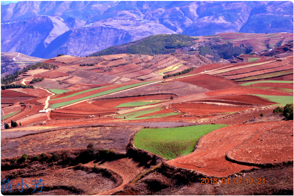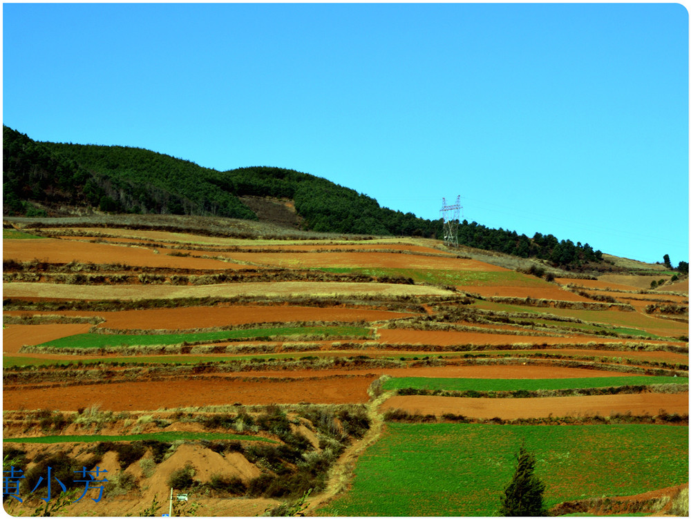 云南地處溫暖濕潤的環(huán)境,土壤里的鐵質(zhì)經(jīng)過氧化慢慢沉積下來,逐漸形成了炫目的色彩。東川紅土地指的是位于昆明市東川區(qū)西南40多公里的紅土地鎮(zhèn)、有一名叫“花石頭”(在109公里程碑處)的地方,這里方圓近百里的區(qū)域是云南紅土高原上最集中、最典型、最具特色的紅土地。每年9至12月,一部分紅土地翻根待種,另一部分紅土地已經(jīng)種上綠綠的青稞或小麥和其他農(nóng)作物,遠(yuǎn)遠(yuǎn)看去,就像上天涂抹的色塊,色彩絢麗斑斕,襯以藍(lán)天、白云和那變幻莫測(cè)的光束,構(gòu)成了紅土地壯觀的景色。