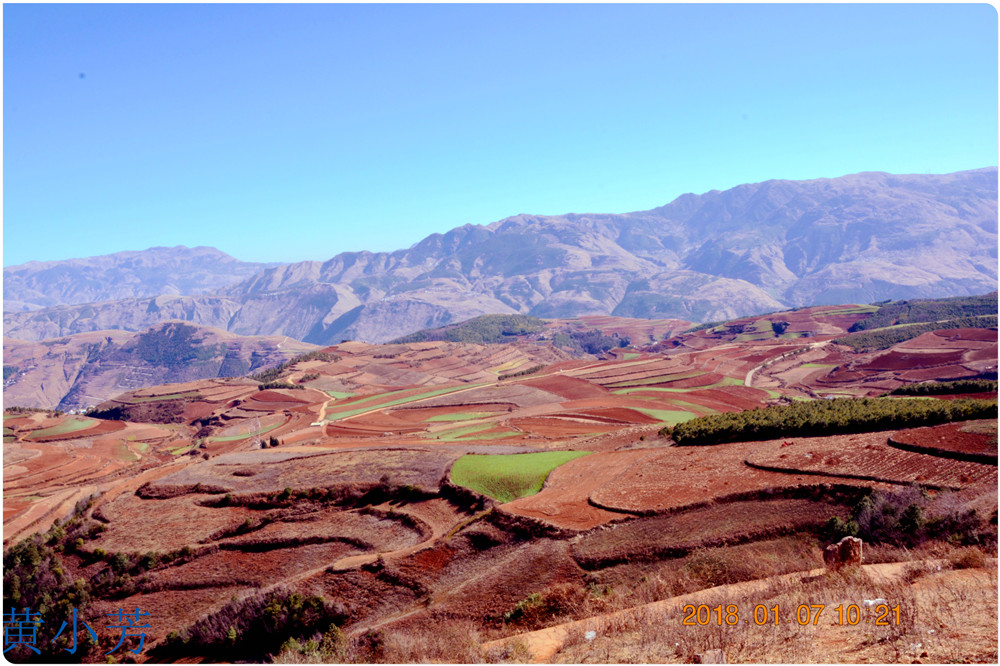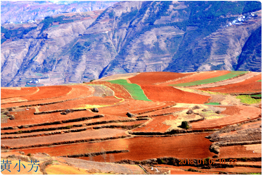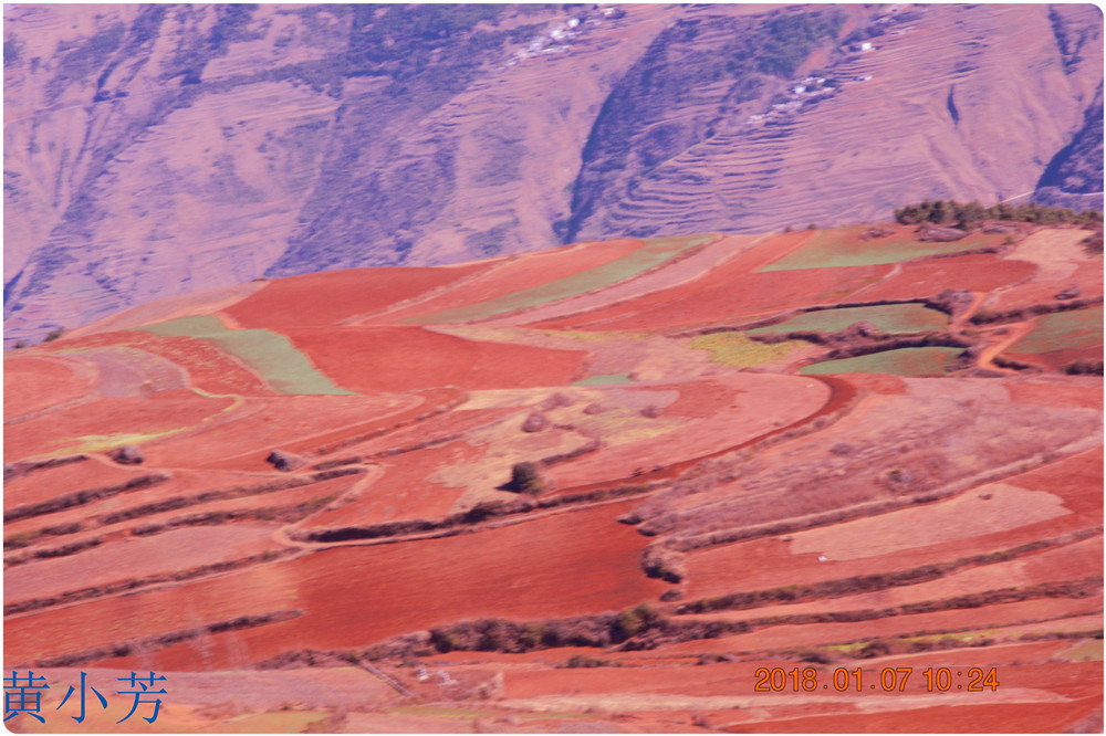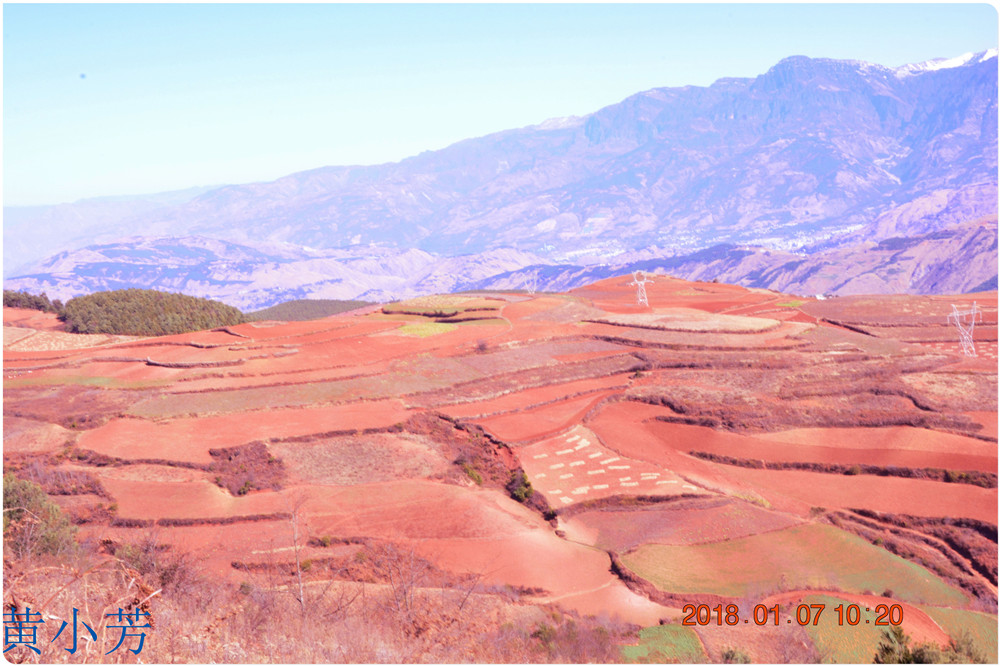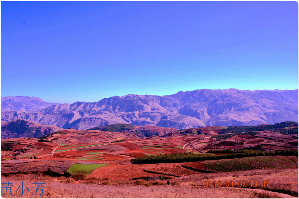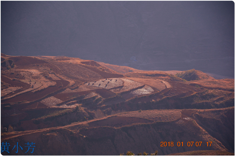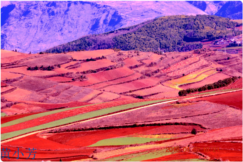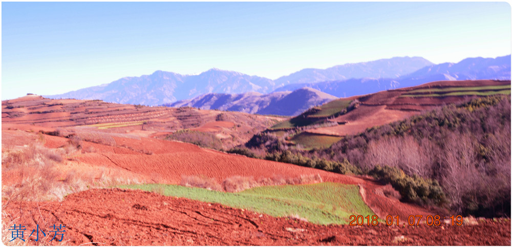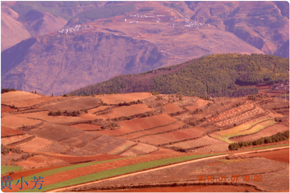 云南地處溫暖濕潤的環(huán)境,土壤里的鐵質(zhì)經(jīng)過氧化慢慢沉積下來,逐漸形成了炫目的色彩。東川紅土地指的是位于昆明市東川區(qū)西南40多公里的紅土地鎮(zhèn)、有一名叫“花石頭”(在109公里程碑處)的地方,這里方圓近百里的區(qū)域是云南紅土高原上最集中、最典型、最具特色的紅土地。每年9至12月,一部分紅土地翻根待種,另一部分紅土地已經(jīng)種上綠綠的青稞或小麥和其他農(nóng)作物,遠(yuǎn)遠(yuǎn)看去,就像上天涂抹的色塊,色彩絢麗斑斕,襯以藍(lán)天、白云和那變幻莫測(cè)的光束,構(gòu)成了紅土地壯觀的景色。