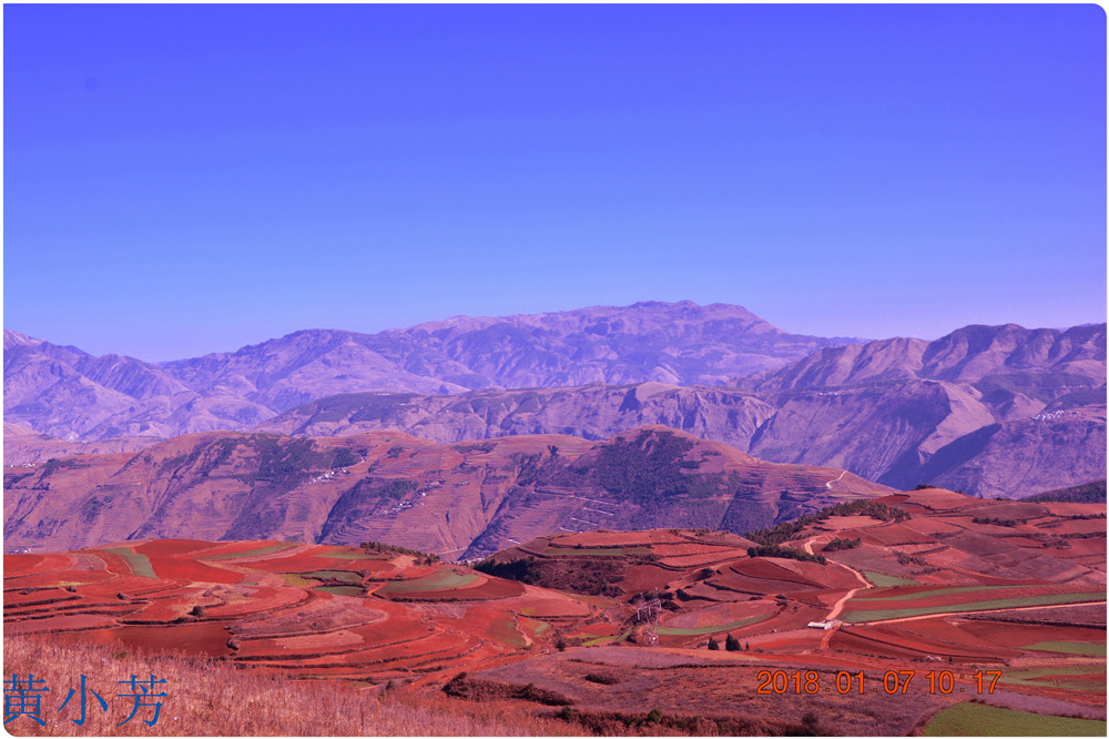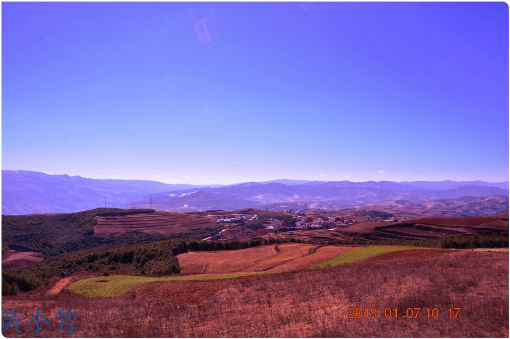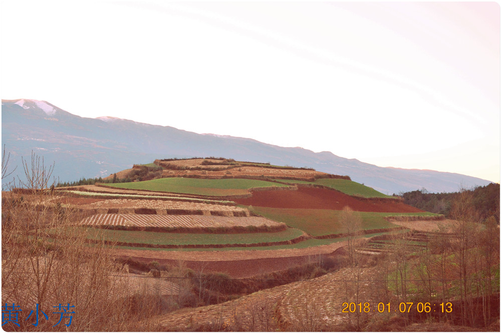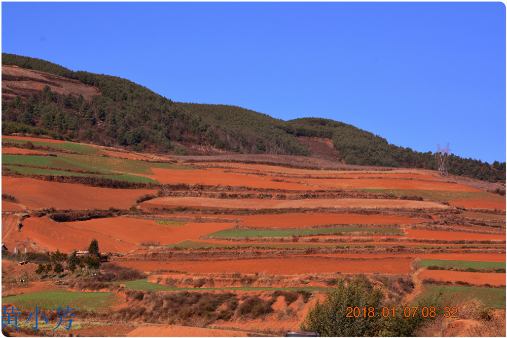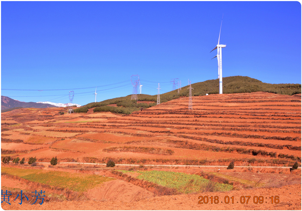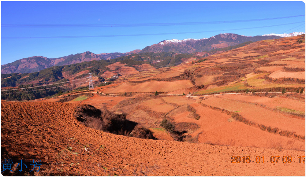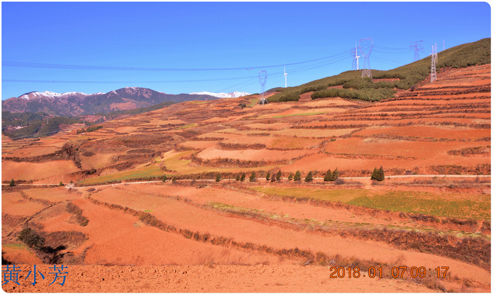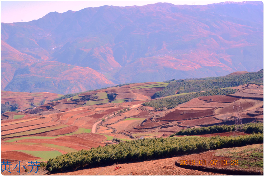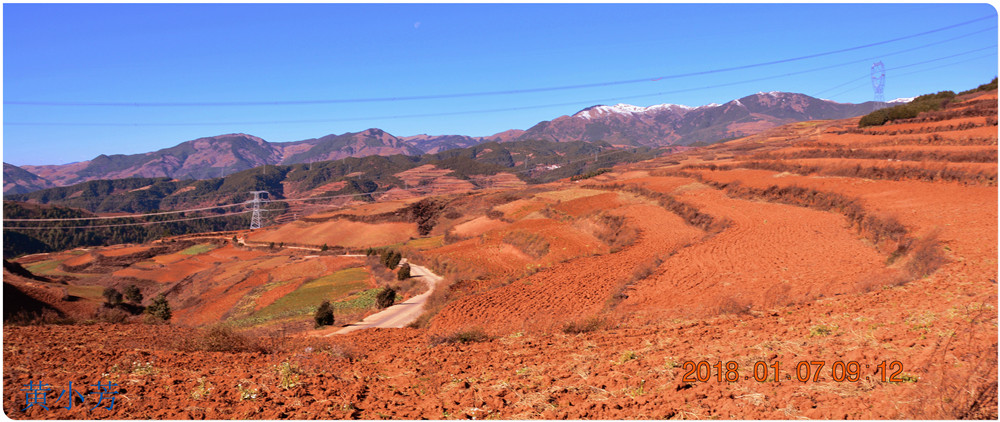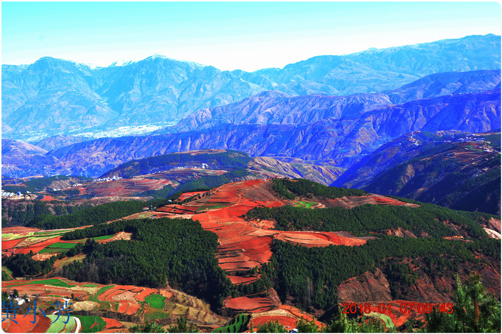 云南地處溫暖濕潤的環(huán)境,土壤里的鐵質(zhì)經(jīng)過氧化慢慢沉積下來,逐漸形成了炫目的色彩。東川紅土地指的是位于昆明市東川區(qū)西南40多公里的紅土地鎮(zhèn)、有一名叫“花石頭”(在109公里程碑處)的地方,這里方圓近百里的區(qū)域是云南紅土高原上最集中、最典型、最具特色的紅土地。每年9至12月,一部分紅土地翻根待種,另一部分紅土地已經(jīng)種上綠綠的青稞或小麥和其他農(nóng)作物,遠(yuǎn)遠(yuǎn)看去,就像上天涂抹的色塊,色彩絢麗斑斕,襯以藍(lán)天、白云和那變幻莫測(cè)的光束,構(gòu)成了紅土地壯觀的景色。
