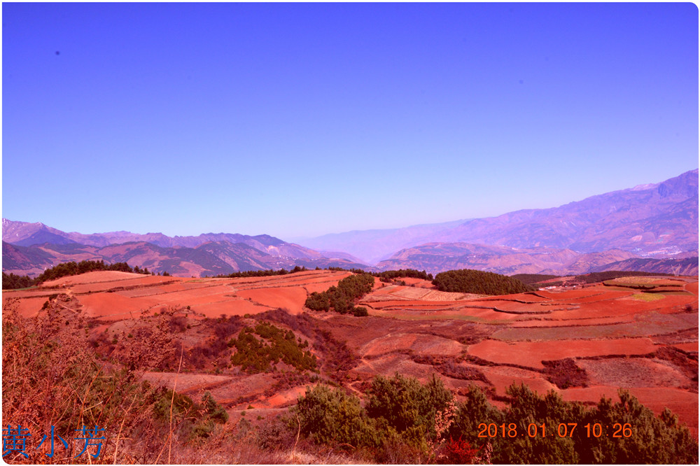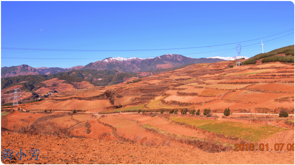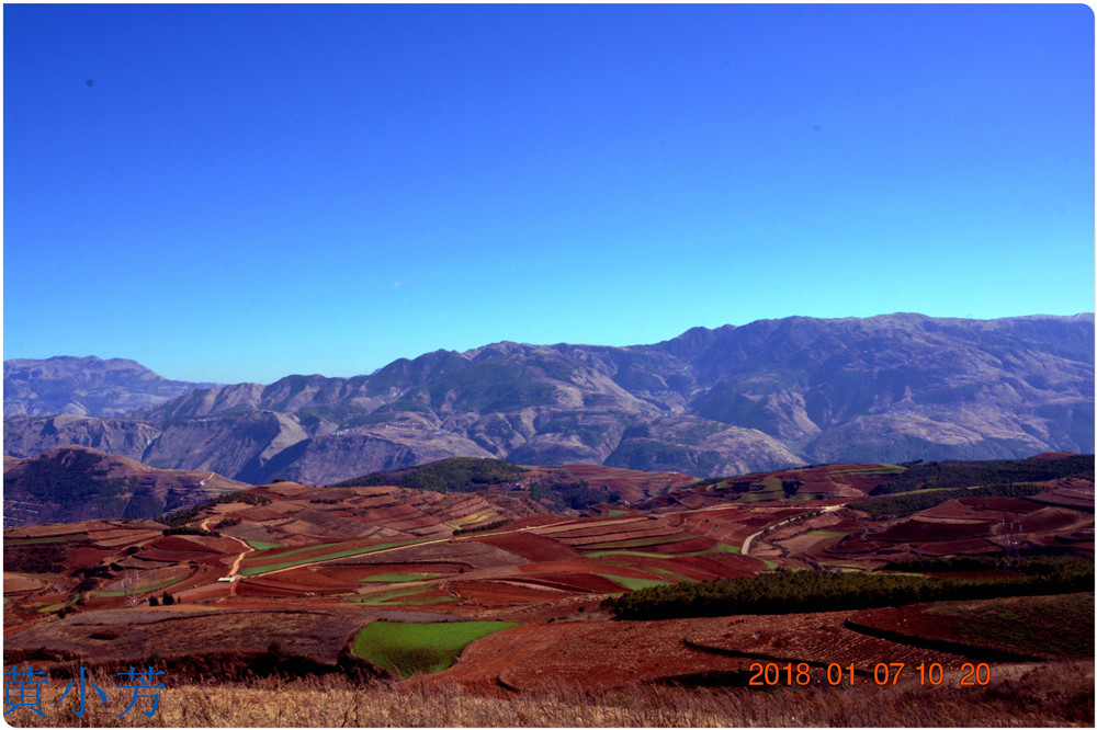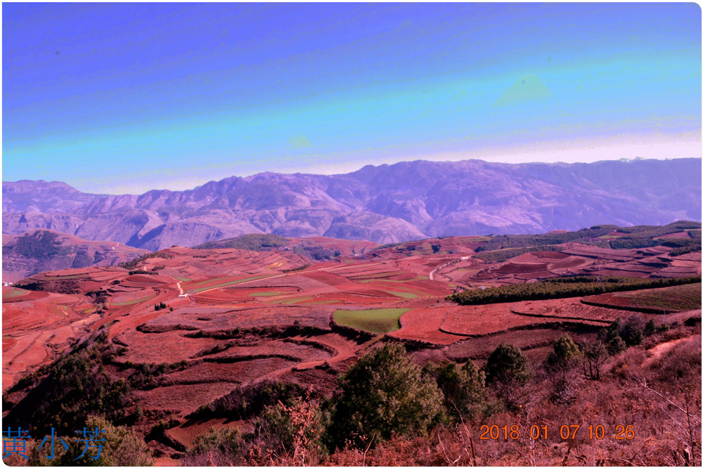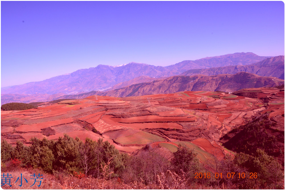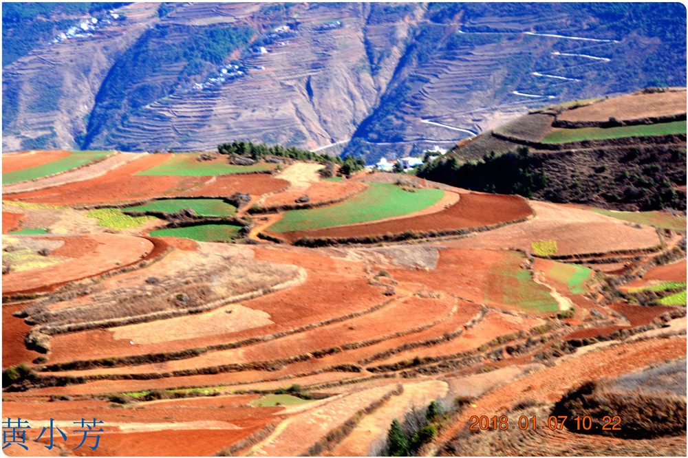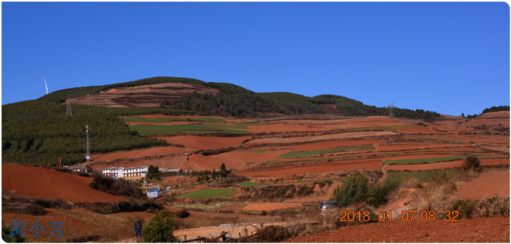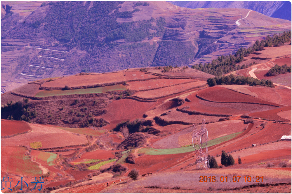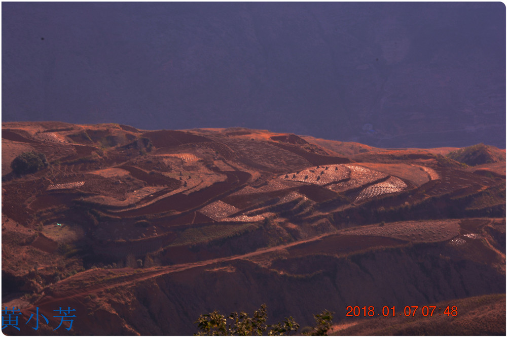 云南地處溫暖濕潤的環(huán)境,土壤里的鐵質(zhì)經(jīng)過氧化慢慢沉積下來,逐漸形成了炫目的色彩。東川紅土地指的是位于昆明市東川區(qū)西南40多公里的紅土地鎮(zhèn)、有一名叫“花石頭”(在109公里程碑處)的地方,這里方圓近百里的區(qū)域是云南紅土高原上最集中、最典型、最具特色的紅土地。每年9至12月,一部分紅土地翻根待種,另一部分紅土地已經(jīng)種上綠綠的青稞或小麥和其他農(nóng)作物,遠(yuǎn)遠(yuǎn)看去,就像上天涂抹的色塊,色彩絢麗斑斕,襯以藍(lán)天、白云和那變幻莫測(cè)的光束,構(gòu)成了紅土地壯觀的景色。