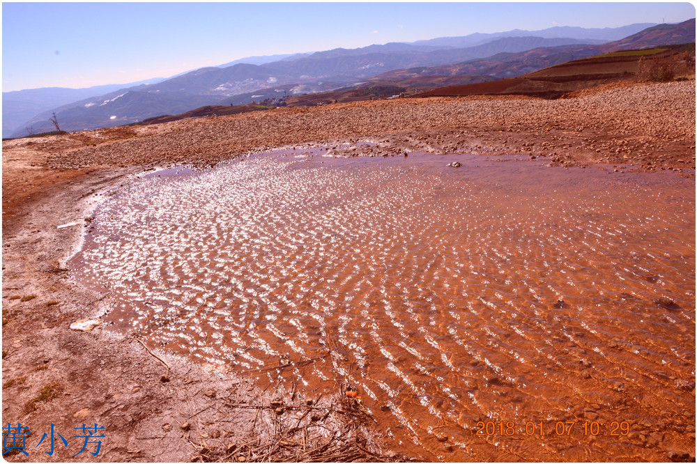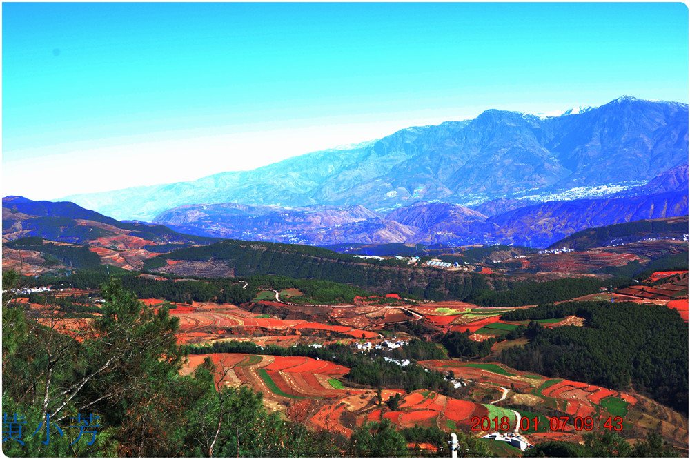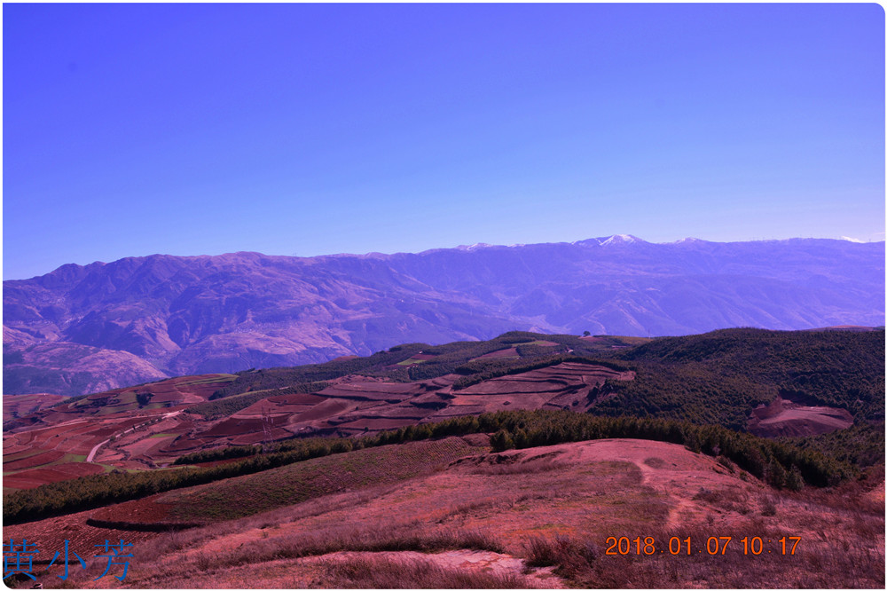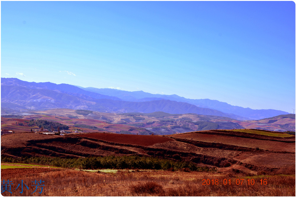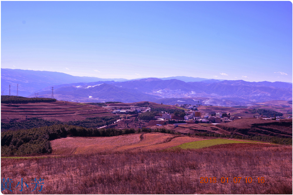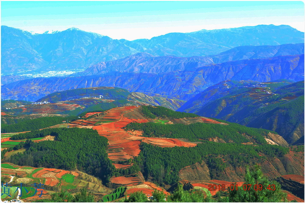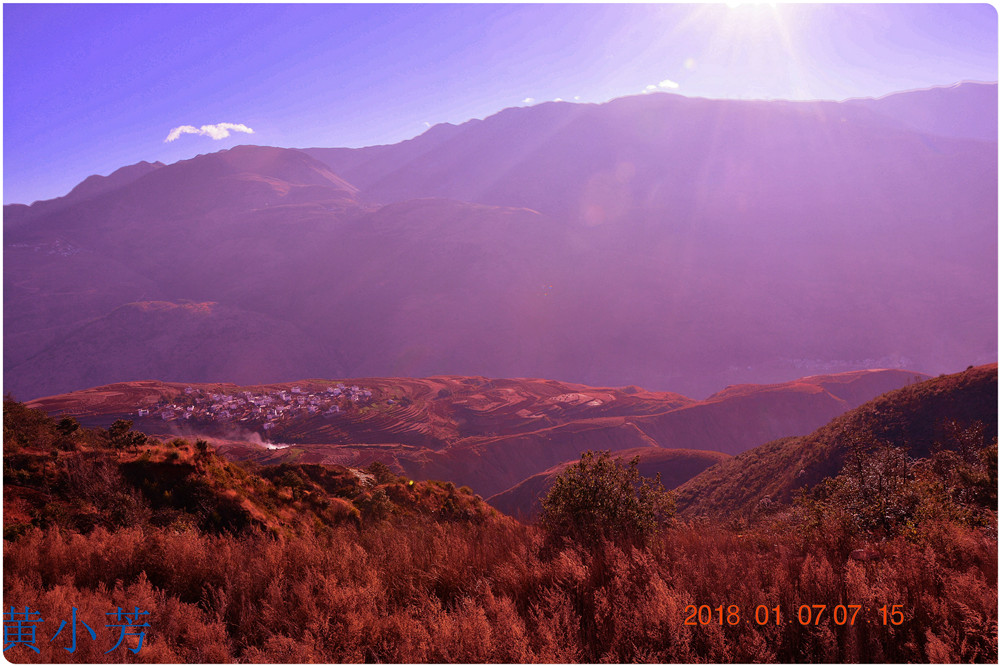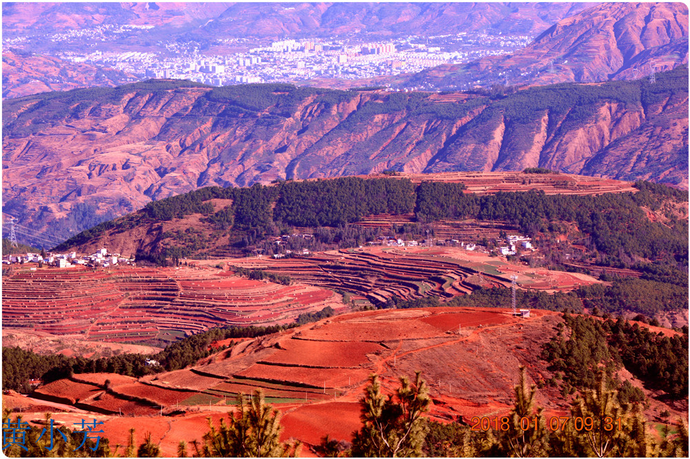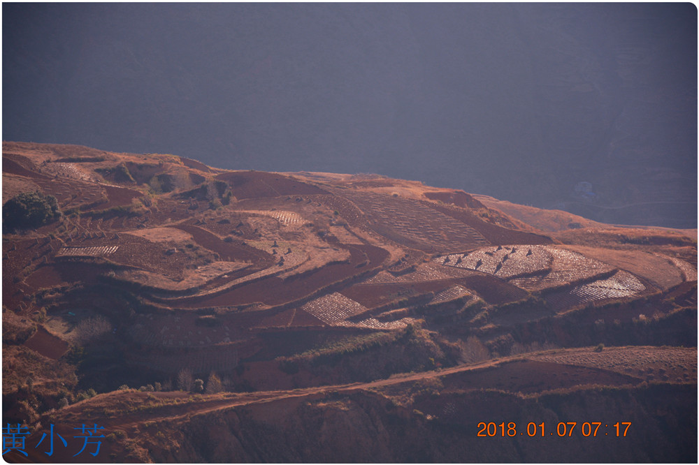 云南地處溫暖濕潤的環(huán)境,土壤里的鐵質(zhì)經(jīng)過氧化慢慢沉積下來,逐漸形成了炫目的色彩。東川紅土地指的是位于昆明市東川區(qū)西南40多公里的紅土地鎮(zhèn)、有一名叫“花石頭”(在109公里程碑處)的地方,這里方圓近百里的區(qū)域是云南紅土高原上最集中、最典型、最具特色的紅土地。每年9至12月,一部分紅土地翻根待種,另一部分紅土地已經(jīng)種上綠綠的青稞或小麥和其他農(nóng)作物,遠(yuǎn)遠(yuǎn)看去,就像上天涂抹的色塊,色彩絢麗斑斕,襯以藍(lán)天、白云和那變幻莫測(cè)的光束,構(gòu)成了紅土地壯觀的景色。