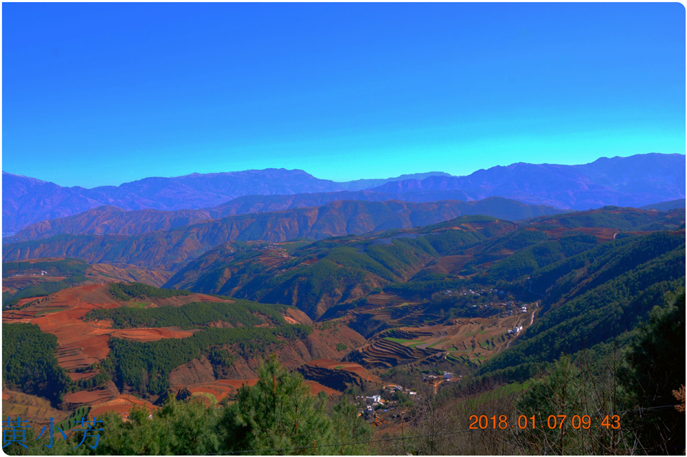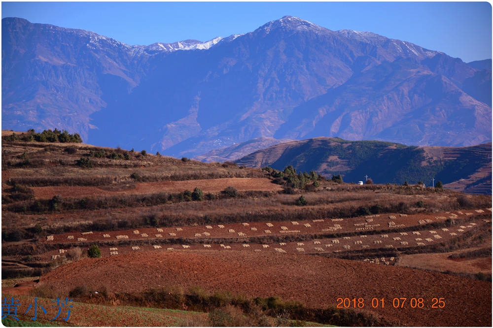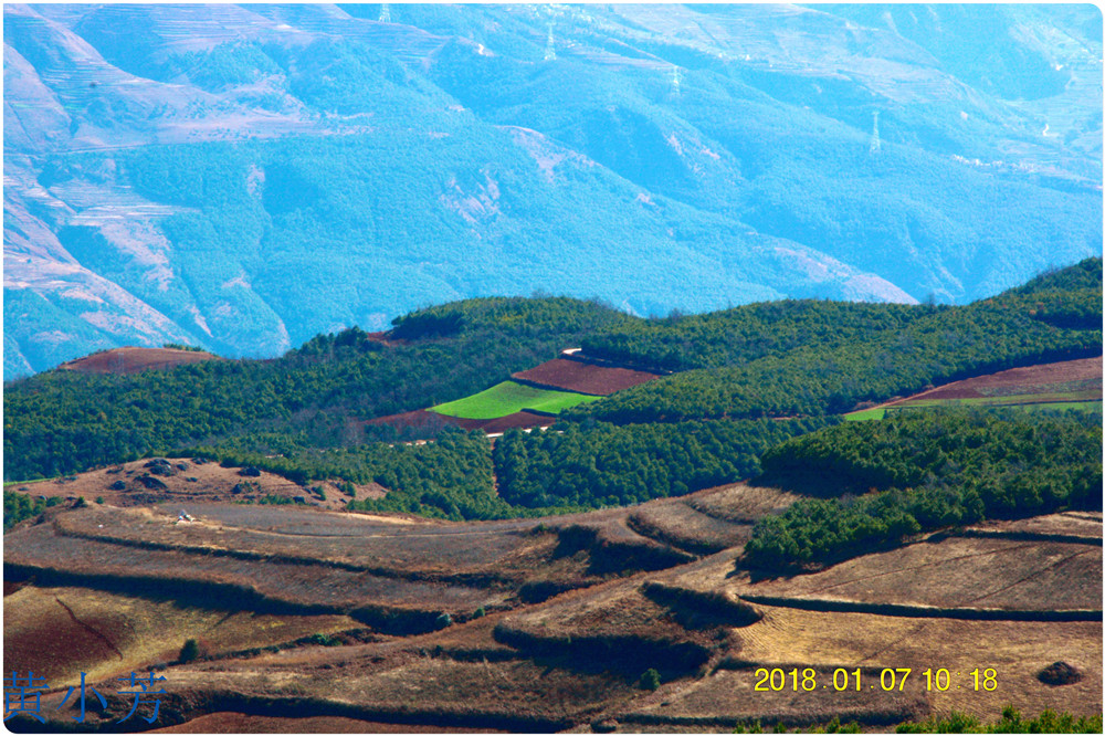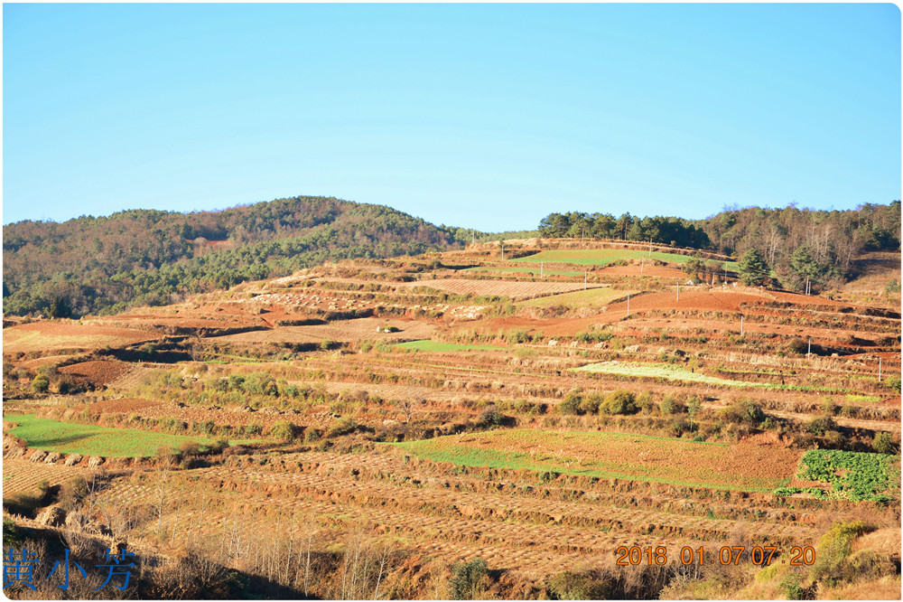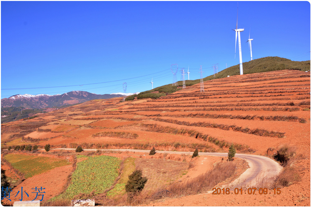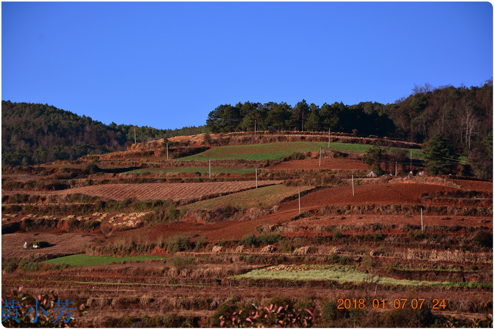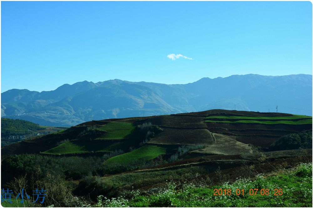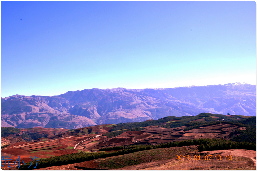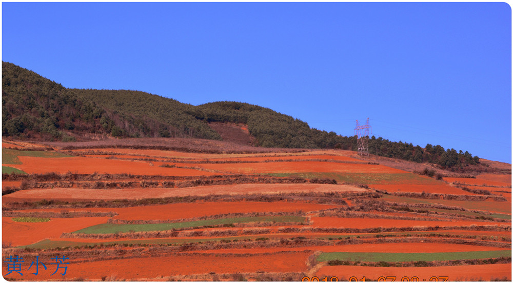 云南地處溫暖濕潤的環(huán)境,土壤里的鐵質(zhì)經(jīng)過氧化慢慢沉積下來,逐漸形成了炫目的色彩。東川紅土地指的是位于昆明市東川區(qū)西南40多公里的紅土地鎮(zhèn)、有一名叫“花石頭”(在109公里程碑處)的地方,這里方圓近百里的區(qū)域是云南紅土高原上最集中、最典型、最具特色的紅土地。每年9至12月,一部分紅土地翻根待種,另一部分紅土地已經(jīng)種上綠綠的青稞或小麥和其他農(nóng)作物,遠(yuǎn)遠(yuǎn)看去,就像上天涂抹的色塊,色彩絢麗斑斕,襯以藍(lán)天、白云和那變幻莫測(cè)的光束,構(gòu)成了紅土地壯觀的景色。