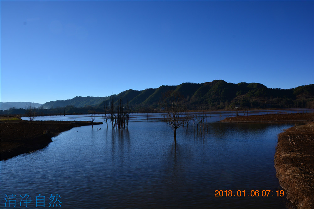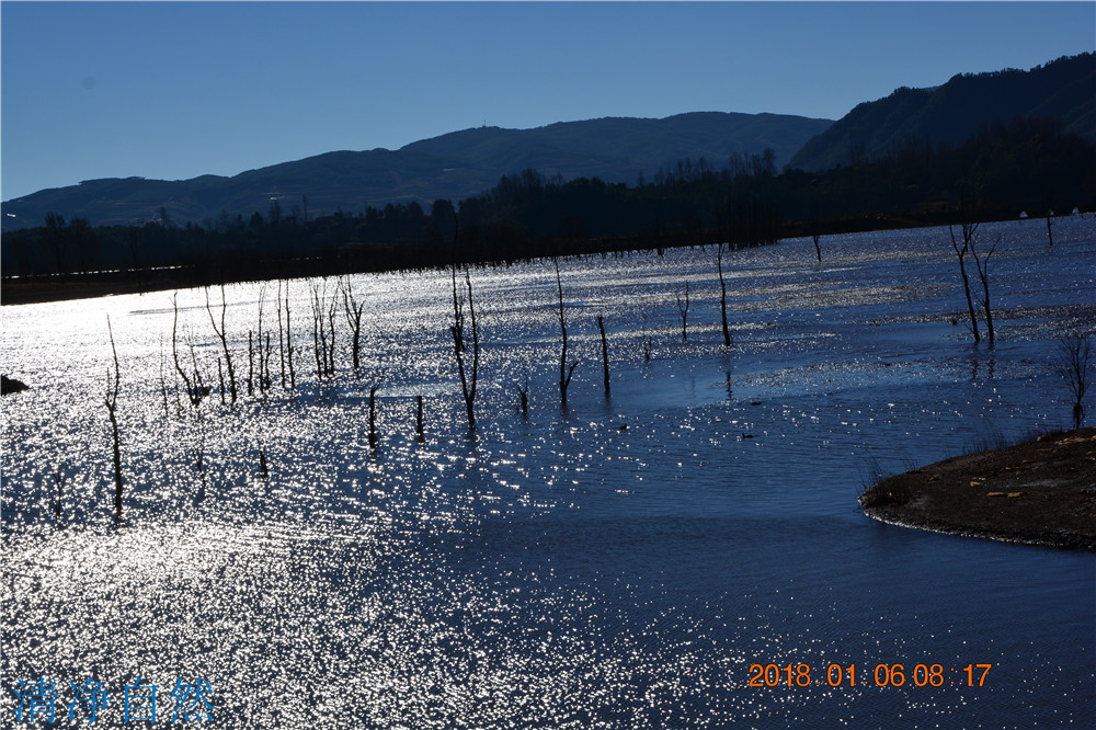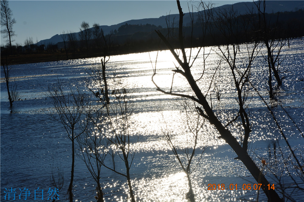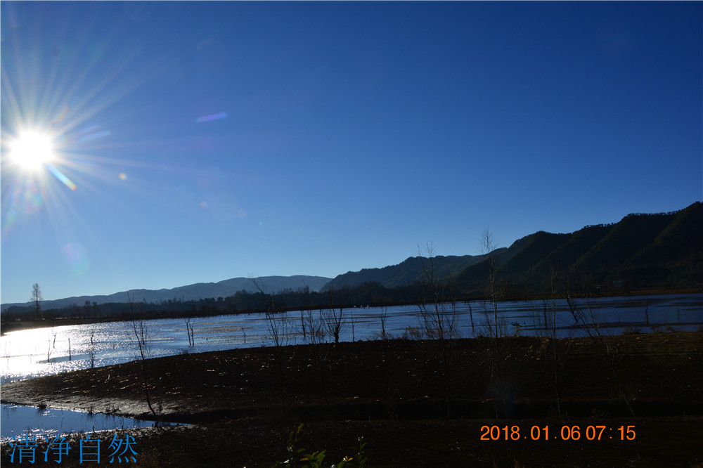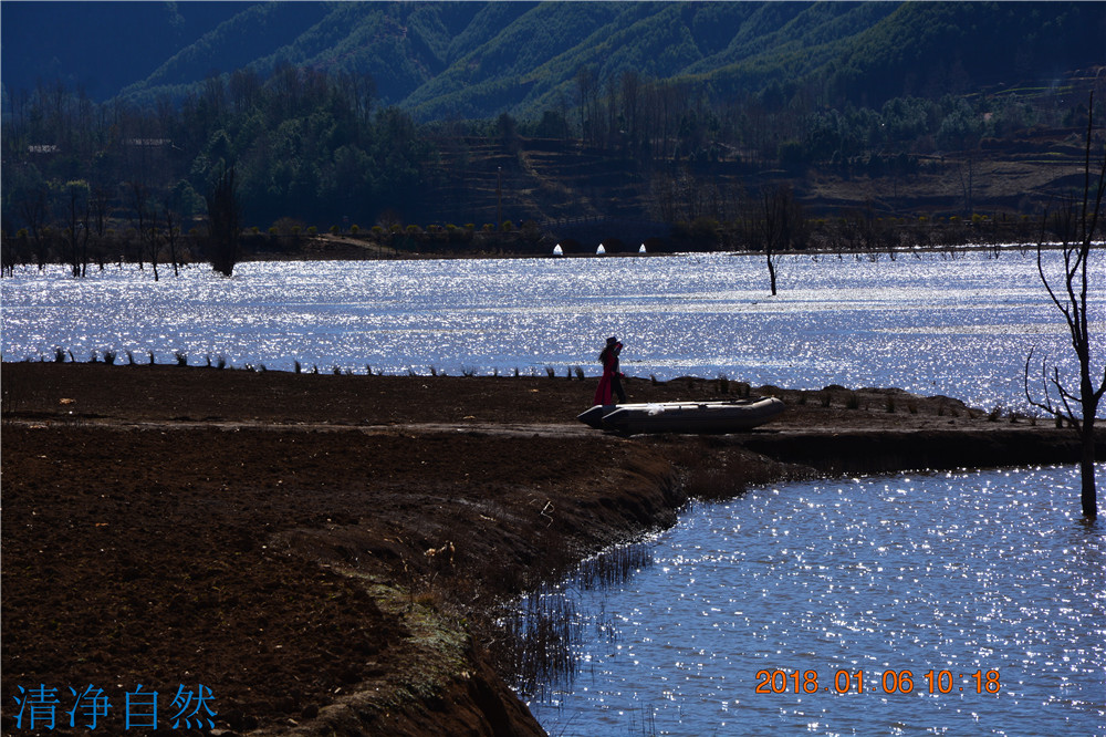 因念湖海納百川、不捐細(xì)流,故成其大。于山巔俯視,清亮澄澈,明如鸞鏡,微風(fēng)拂過,波光瀲滟??拷О闳崆?,萬種嫵媚,無風(fēng)時(shí)靜如處子,讓你感覺不到它在流動(dòng);起風(fēng)時(shí)動(dòng)如脫兔,波濤拍擊兩岸,卷起層層浪花,浸染了滿身溫柔。掬一捧灑于臉頰,清涼柔滑,浮躁的心漸于平靜,讓心靈遠(yuǎn)離了喧囂、忘卻了紛紛擾擾。此時(shí),誰都甘心做一棵水草,醉臥在念湖的柔波里,自由自在地優(yōu)游。這里的山環(huán)繞著水,這里水倒映著山,在晴朗時(shí)日,天與山相連,水與山相擁,水天一色,渾然一體,岸邊追逐的牛羊,浣衣的少女,嬉戲的孩童,一一倒映水中,讓人不知是身在水里、還是身在岸上;要是雨季,湖面上煙霧氤氳,天空灑下密密細(xì)雨,身于其中,撐一支竹篙,尋一簾幽夢(mèng),不覺,笑靨如花,搖曳在煙雨如織的深處。日出時(shí)分,一輪紅日從地平線躍出,萬丈光芒灑滿天地,天空是紅的,山巒是紅的,湖水也變成紅的了,云蒸霞蔚,蔚為壯觀;每當(dāng)夕陽西下,湖面上撒滿金光,岸邊的金柳也成了楚楚的新娘,悠閑散步的行人,懷著花開的模樣,和著晚風(fēng),一路的低呤淺唱。