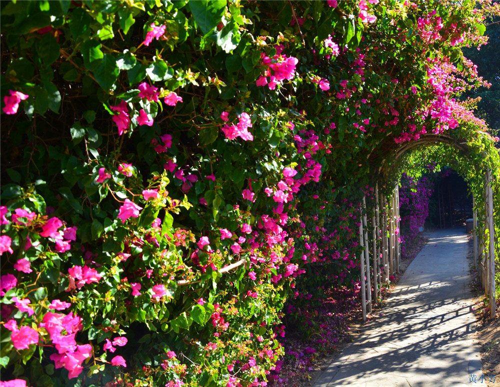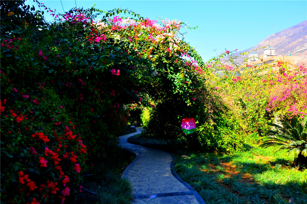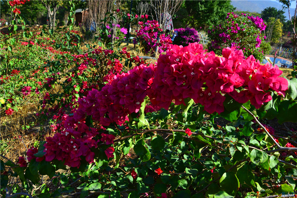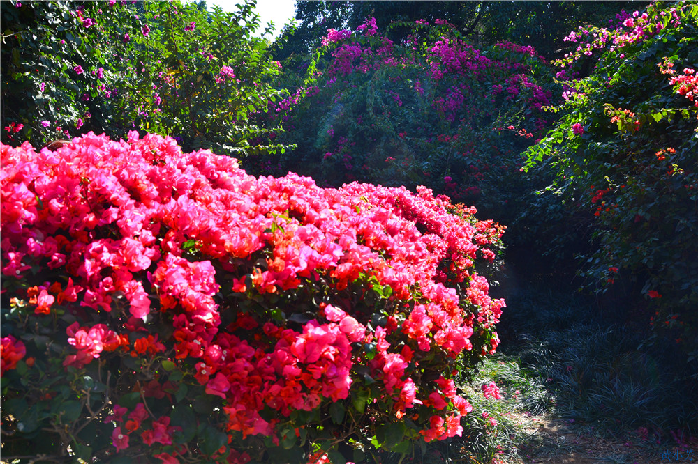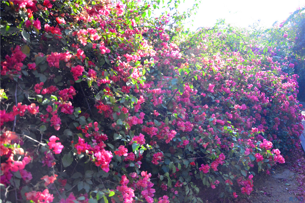 三角梅繁花似錦,絢麗滿枝,苞片有紫藍色、朱紅色、桃紅色、絳紫色、橙黃色等多種,花多聚生成團,紅艷如火,尤其美麗,很適宜種植在公園、花圃、棚架等的門前兩側(cè),攀援作門轅。此外,關(guān)于不同版本的花語,個人覺得取自己喜歡或?qū)嵱玫哪欠N就可以了,因為每種花語都有自己的意思。