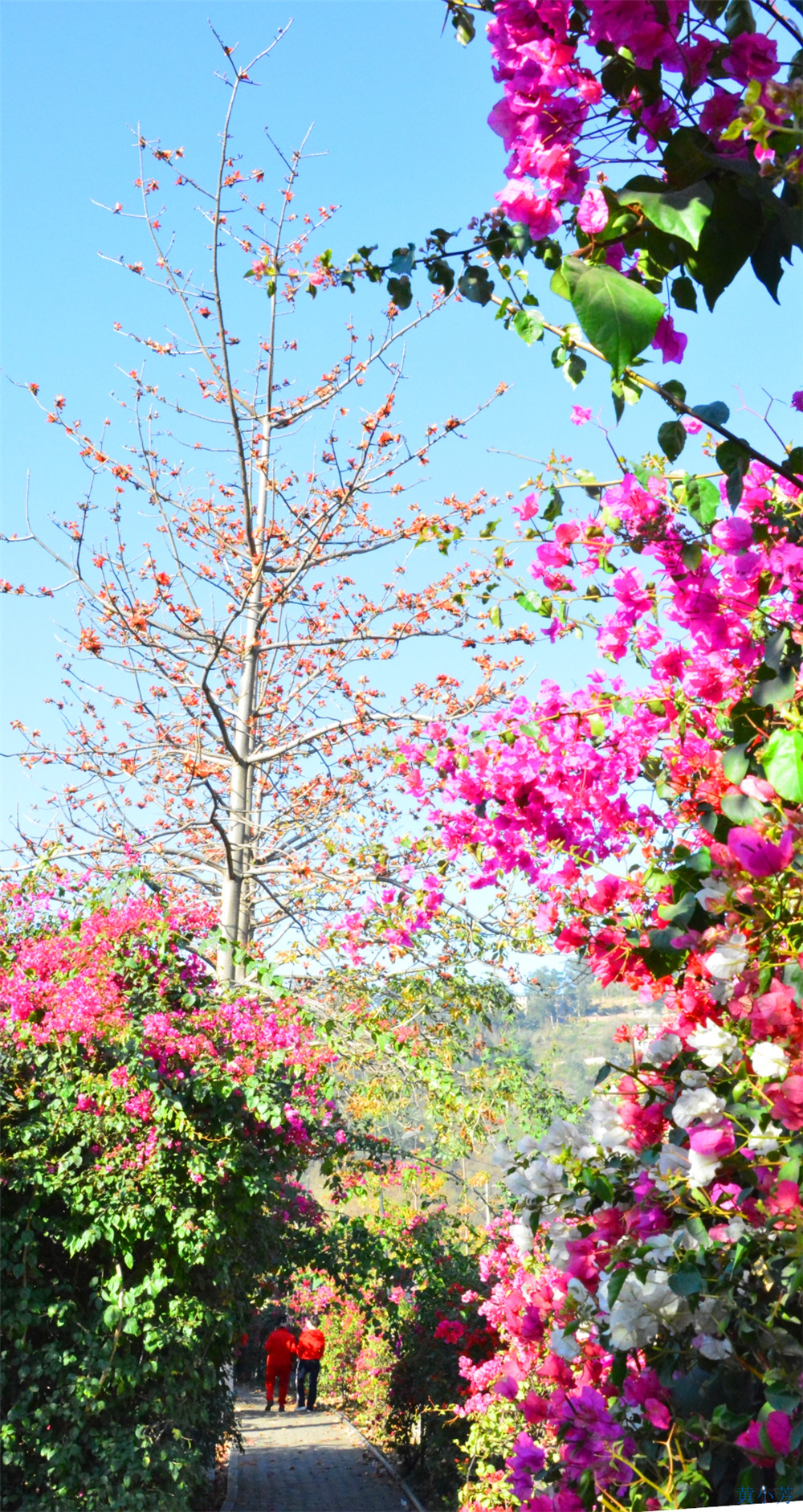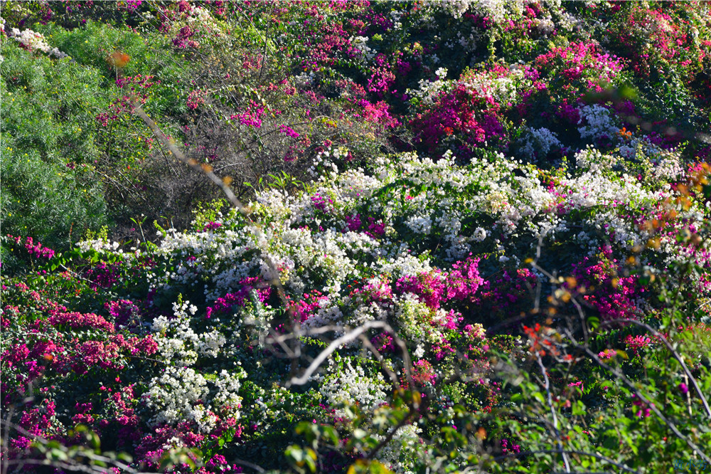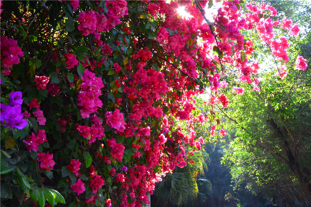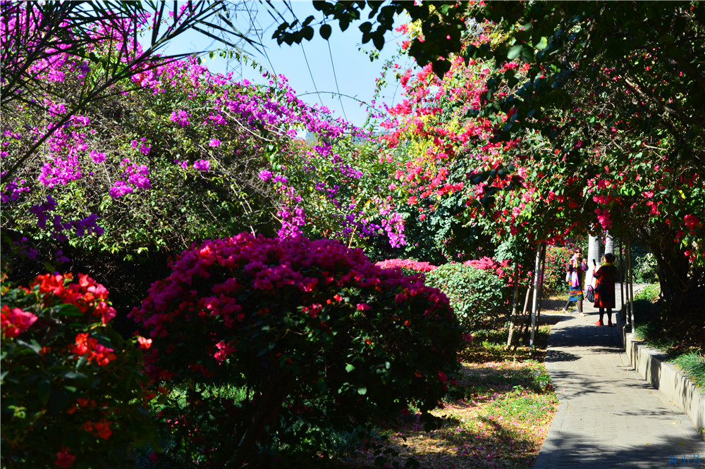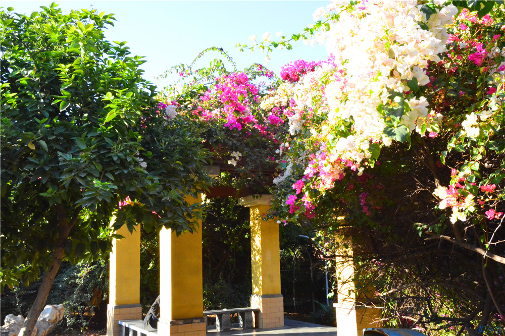 三角梅繁花似錦,絢麗滿枝,苞片有紫藍色、朱紅色、桃紅色、絳紫色、橙黃色等多種,花多聚生成團,紅艷如火,尤其美麗,很適宜種植在公園、花圃、棚架等的門前兩側(cè),攀援作門轅。此外,關(guān)于不同版本的花語,個人覺得取自己喜歡或?qū)嵱玫哪欠N就可以了,因為每種花語都有自己的意思。