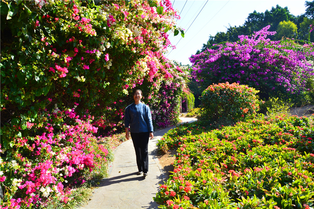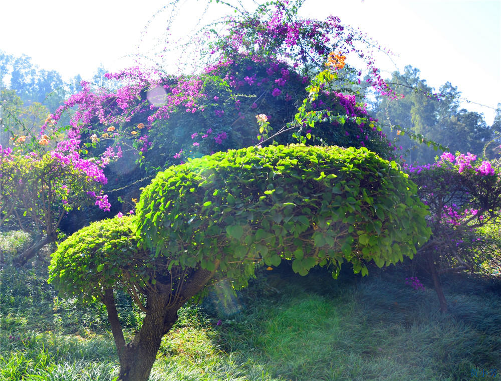 胡應(yīng)能去逝后,小梅姑娘又回到了故鄉(xiāng),她大愛無疆、勇敢追求真愛的故事,也從河南傳到了家鄉(xiāng)。小梅后來終身未嫁,在她死后下葬的山野里,人們發(fā)現(xiàn)了一種花,心形的葉子,三角的花。開得最燦爛的時候,總是一大片一大片,或紅、或紫、或粉,在陽光下閃爍著耀眼的光芒。人們相信這花一定是小梅姑娘的化身,“獨傲紅顏長不逝,春風(fēng)來去總懷情”。所以命名為“三角梅”