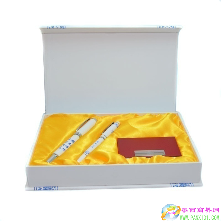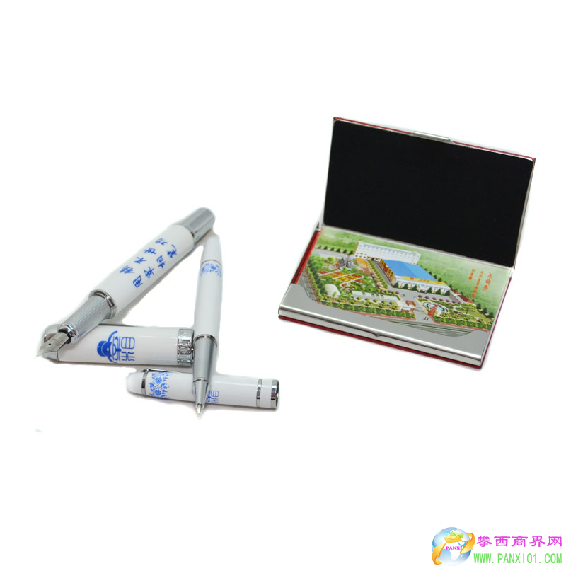 ② 青花瓷筆;里面有套裝的青花瓷筆,還有一個(gè)名片夾??梢宰鳛樯虅?wù)會(huì)