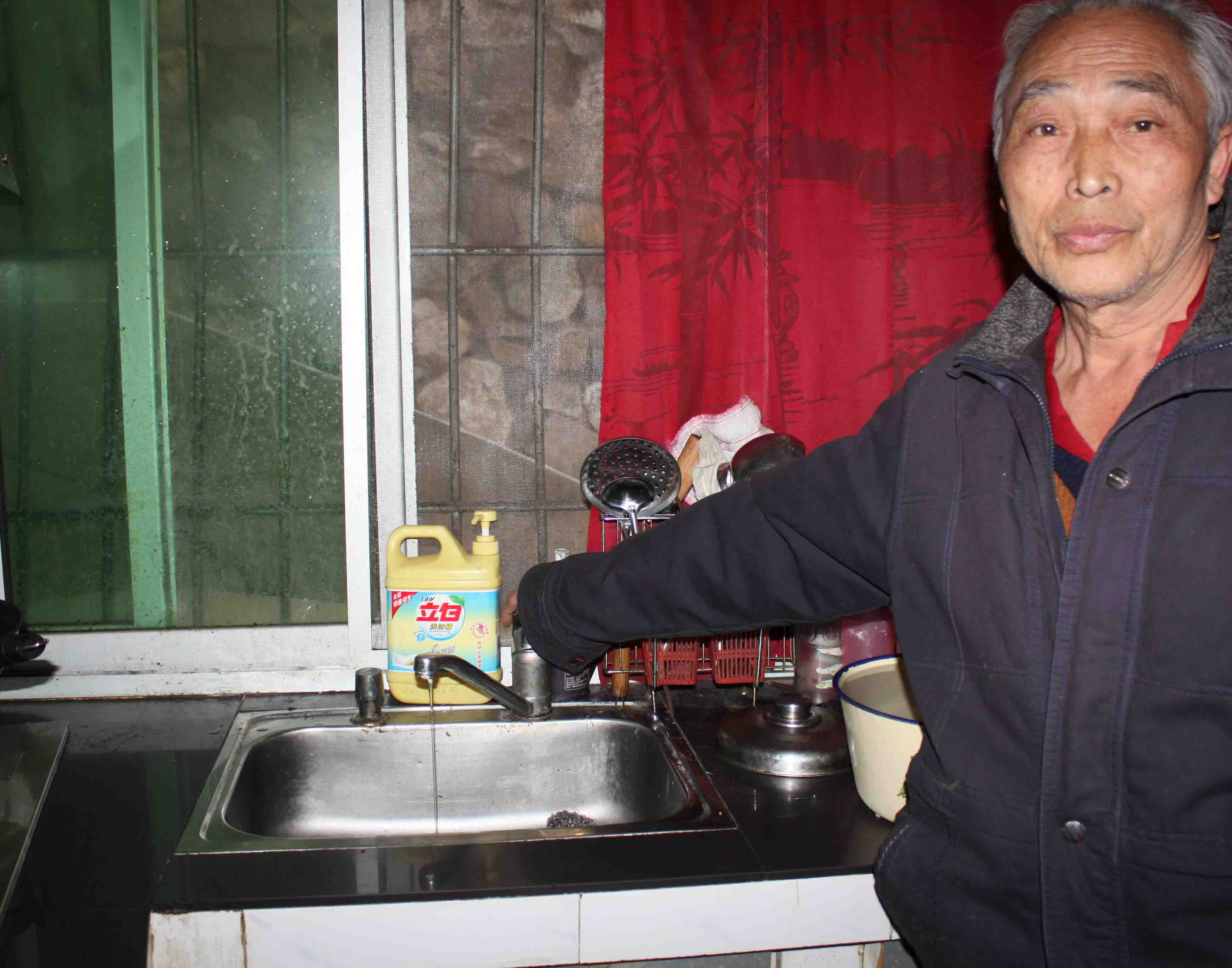 ? ?當日13時20分,記者來到攀鋼南山片區(qū)南山中街1號6棟,在一樓張先生家廚房看到,水管流出來的水細如小拇指,而且時斷時續(xù),很不穩(wěn)定。記者隨后來到南山中街26號二樓周女士家,打開水龍頭,沒有水流出來。在她家廚房地面上,三個水桶裝滿了水。周女士說,這些水是從太陽能熱水器里放下來的,她們一家人這幾天的吃用就靠這些水。