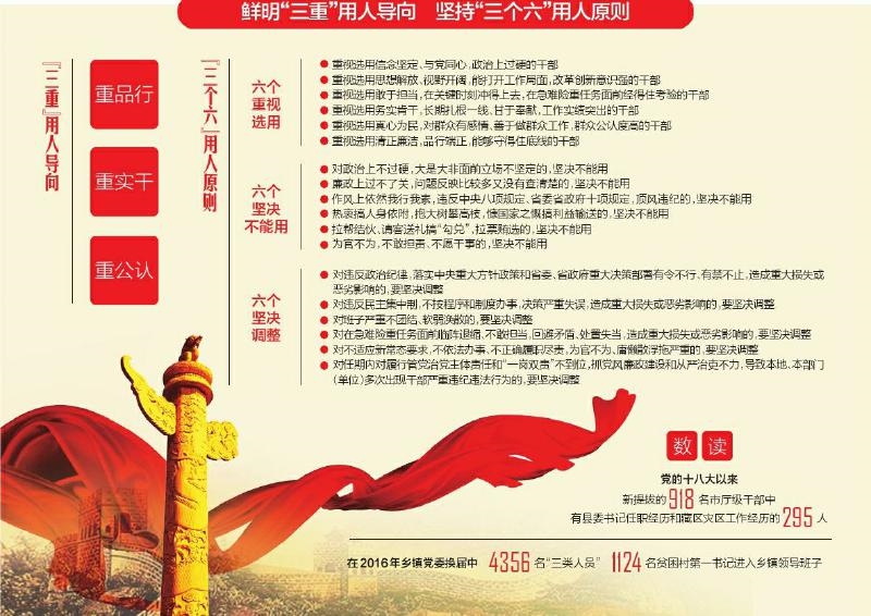• 鮮明“三重”用人導(dǎo)向 堅(jiān)持“三個(gè)六”用人原則 本報(bào)制圖/朱濉