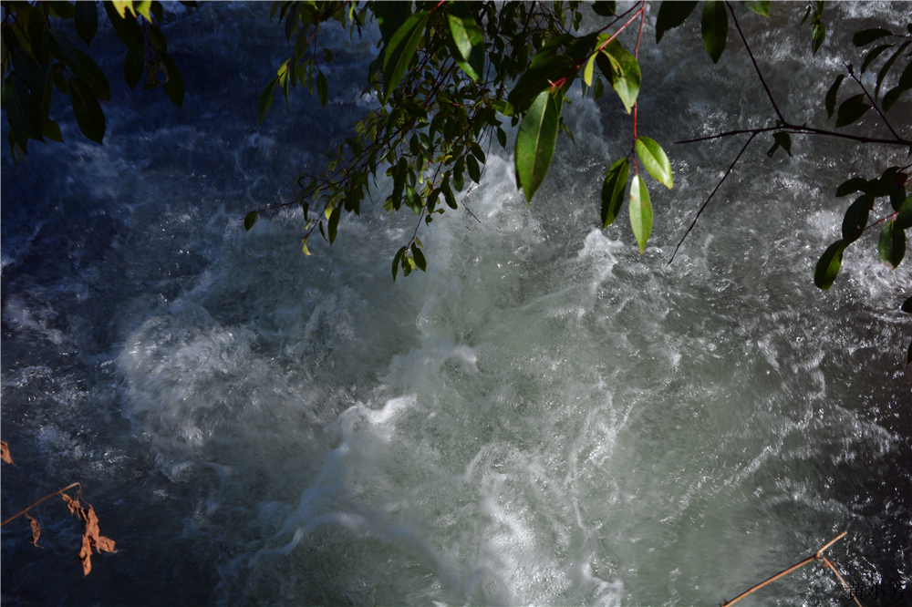 轉(zhuǎn)過數(shù)道急彎,隨著一陣空蒙的聲響,前方絕壁上一道靜靜垂掛的寬闊素練呈現(xiàn)眼前、山色如黛,飛瀑似雪,氣勢磅礴,雄偉壯觀。近前,見瀑布從數(shù)十米高處凌空而下。頂端被巖石撕裂,分為寬窄不勻的三道,沿高低不平的黛色石壁一疊一疊瀉入箐河。置身河岸,微風(fēng)輕拂,時而細(xì)雨朦朦,時而煙霧陣陣。絕壁似屏,飛瀑如畫,動靜相生,恰似一幅潑墨寫意畫。?若太陽直射,瀑布將呈現(xiàn)七色彩虹。然因其處于狹長的峽谷絕壁間,故其呈六色彩虹一如泰山日出,峨眉佛光般可遇而不可求,更令人神往。